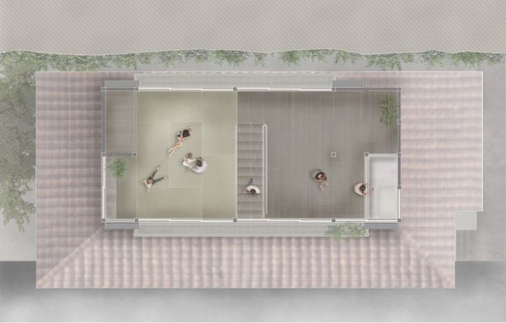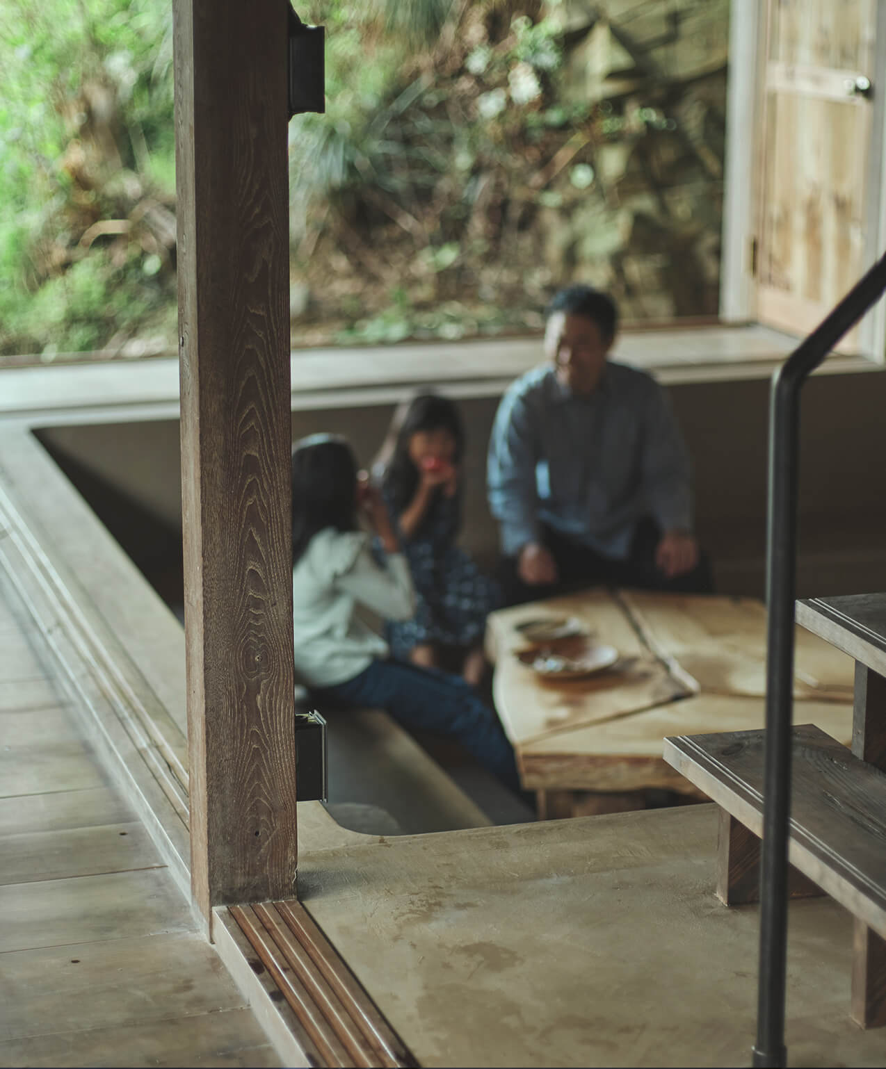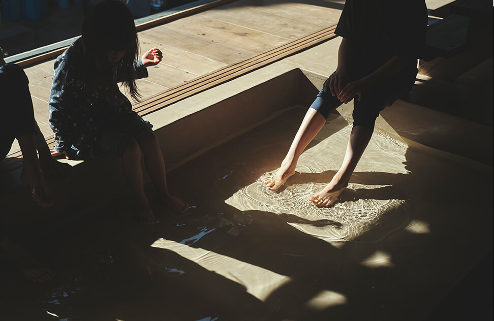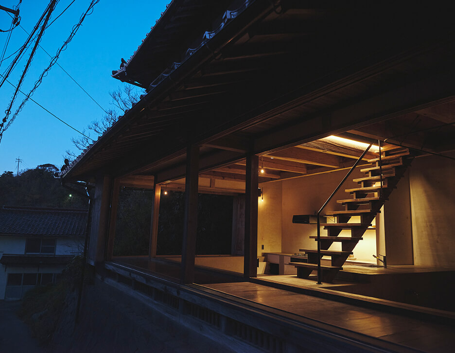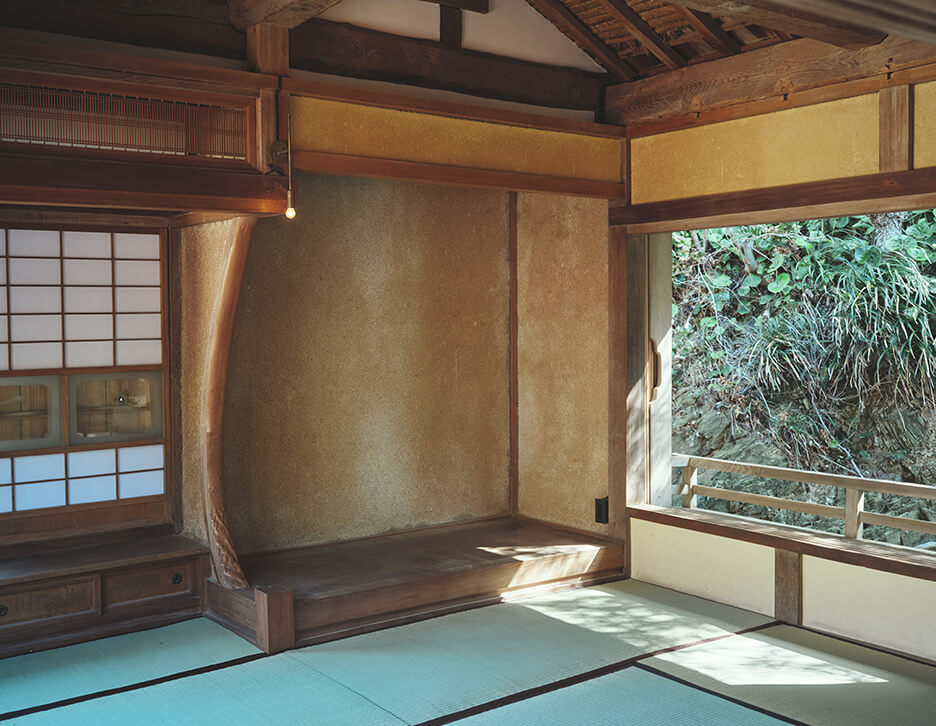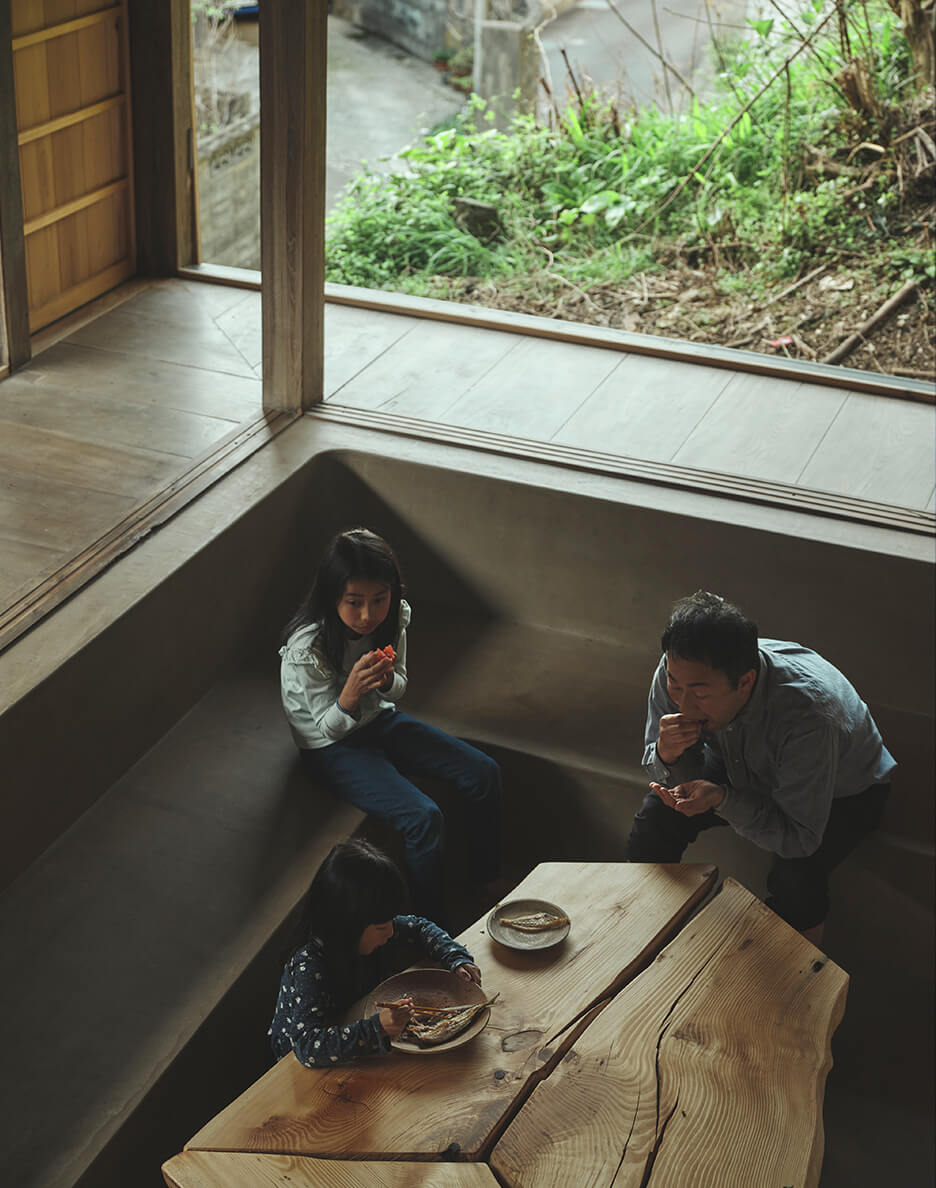 この開きつつも囲われた土間空間を通して、この土地特有の気候風土や生活を感じながら、ゆったりとお過ごしください。