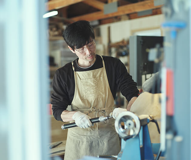 組子細工職人のもとで10年修行を重ねた後、木工作家として独立。同じ時期にチャレンジしていたことがきっかけで意気投合し本プロジェクトに協力いただき小倉屋のテーブルを作成。今後も木工体験など宿と連携したプランを計画中。